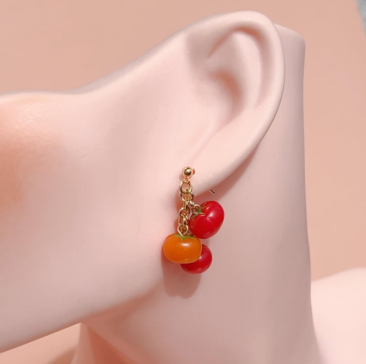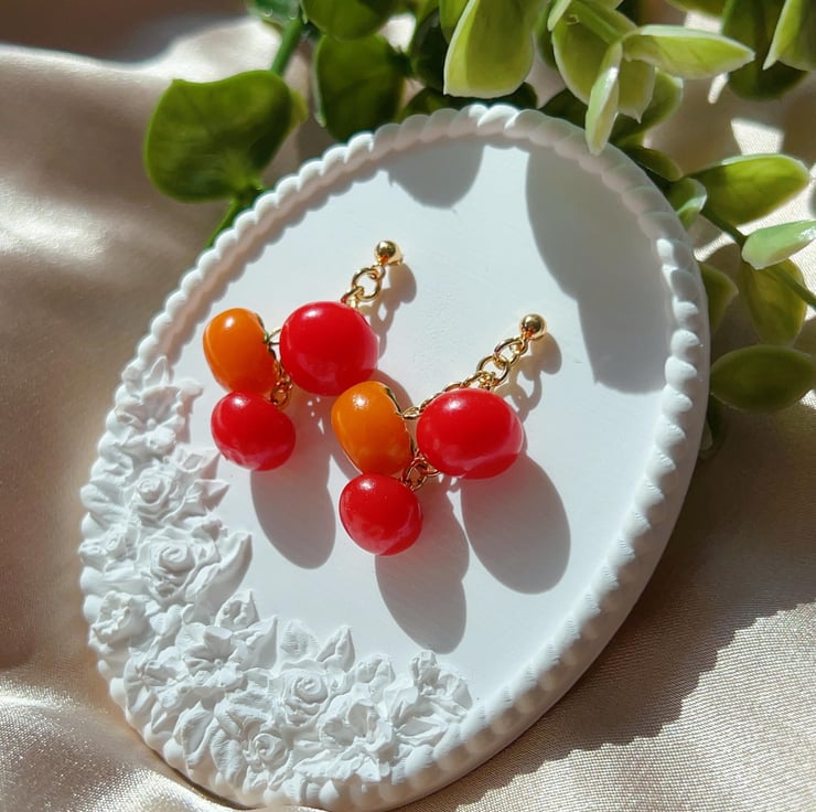 Inspired by sunny summer gardens and the cheerful look of ripe cherry tomatoes, these earrings are all about fun, color, and good vibes.