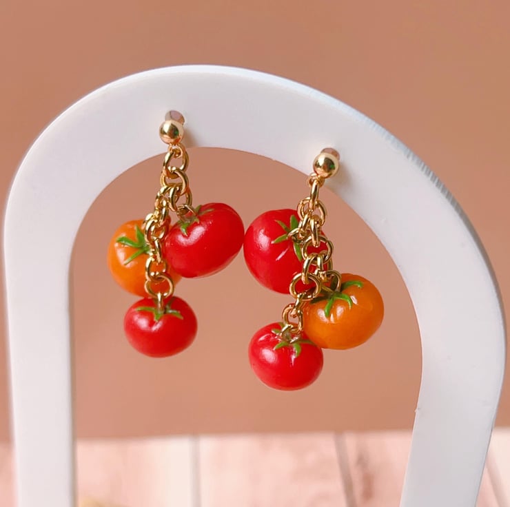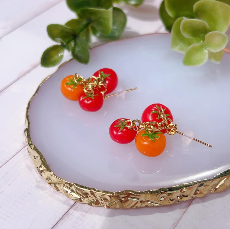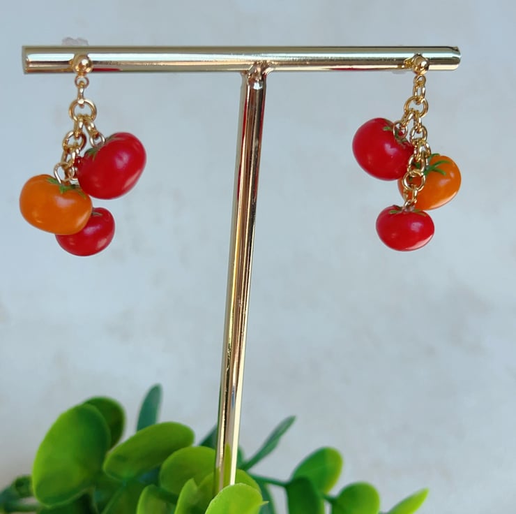 Cute tomato earrings for her, dangle jewelry for plant lovers, quirky style gift