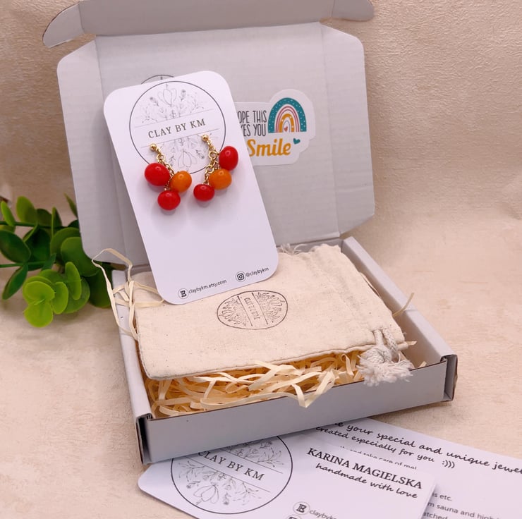 Each piece is hand-shaped in my cozy home studio, made from premium polymer clay and finished with hypoallergenic gold studs. No molds, no mass production — just pure handmade work and attention to detail.