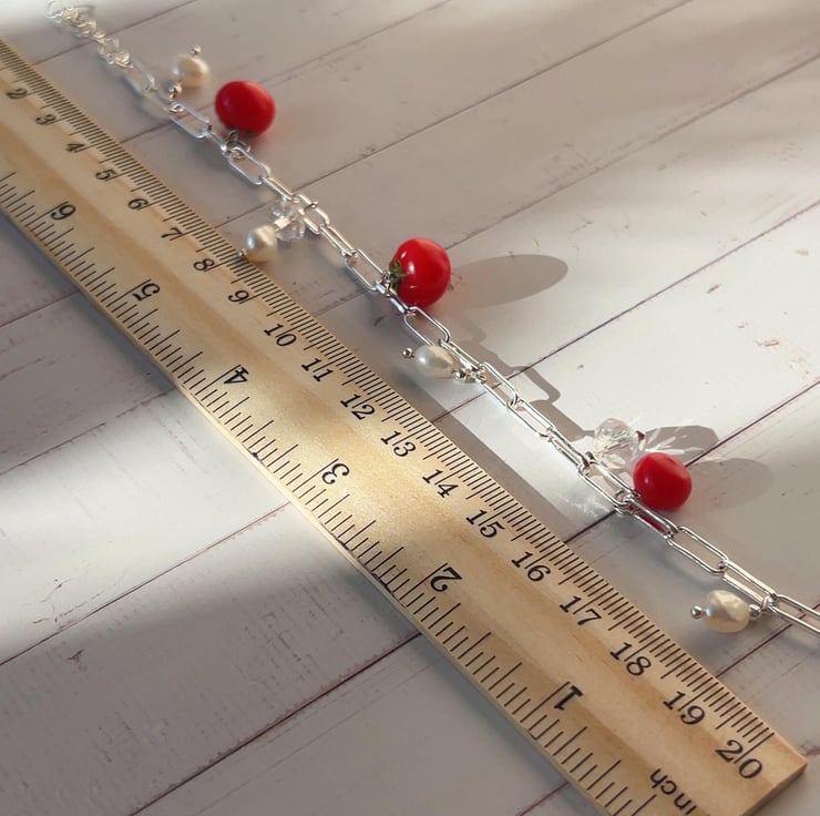 Handmade Tomato and Pearl Bracelet,  Playful Silver Charm Jewellery for her