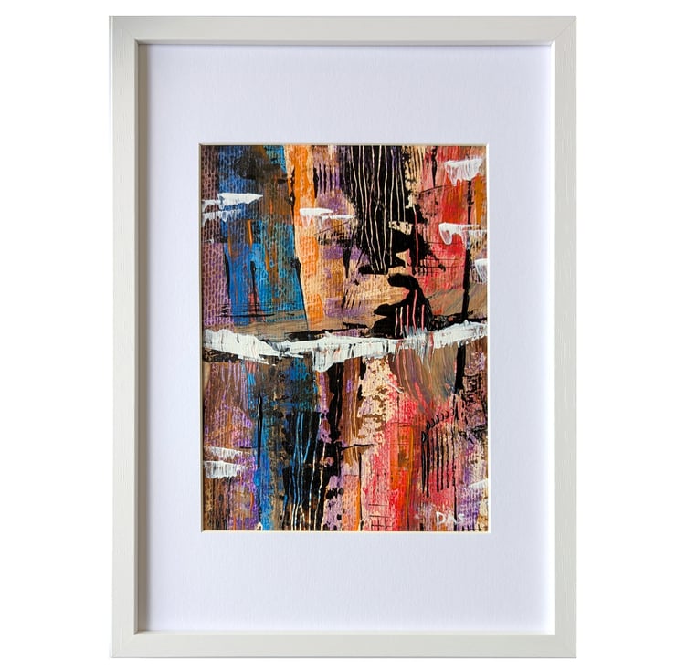 'Primal Reflection' Vividly Coloured Original A4 Framed Painting