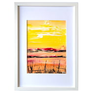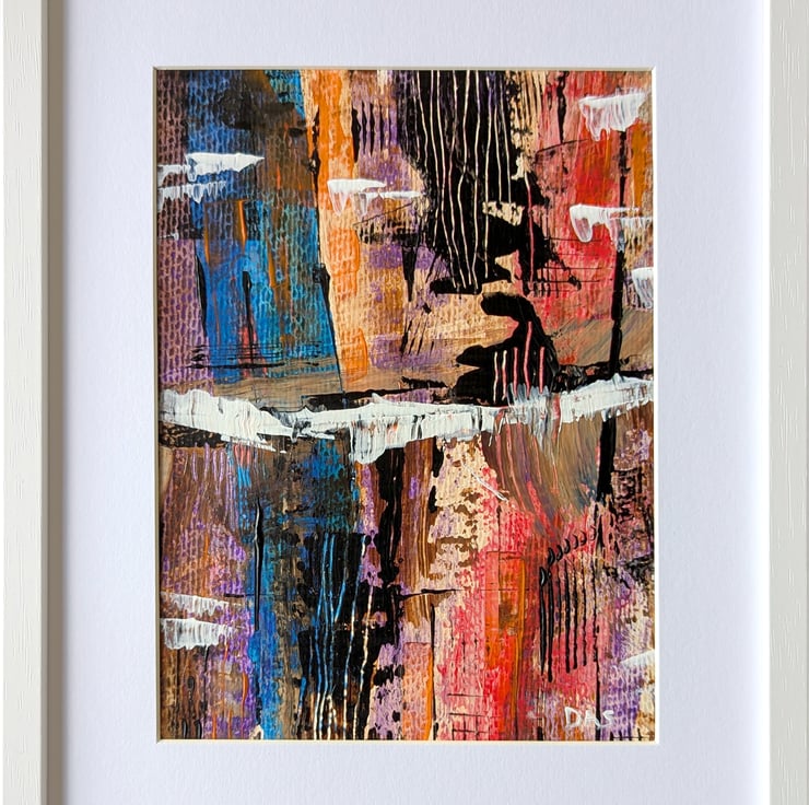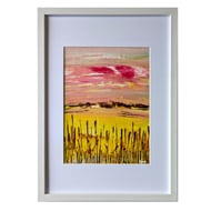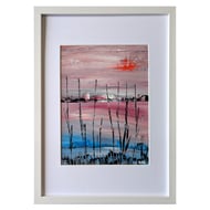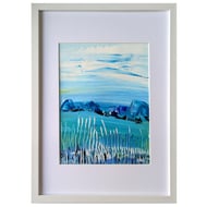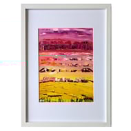 An original acrylic painting on paper complete in white A4 frame. Signed by the artist and varnished. Total size including the A4 frame is 31cm x 22.5cm (12 x 9 inches). The painting itself within its mount is 18.5 x 13.5 cm (7.25 x 5.25 inches).