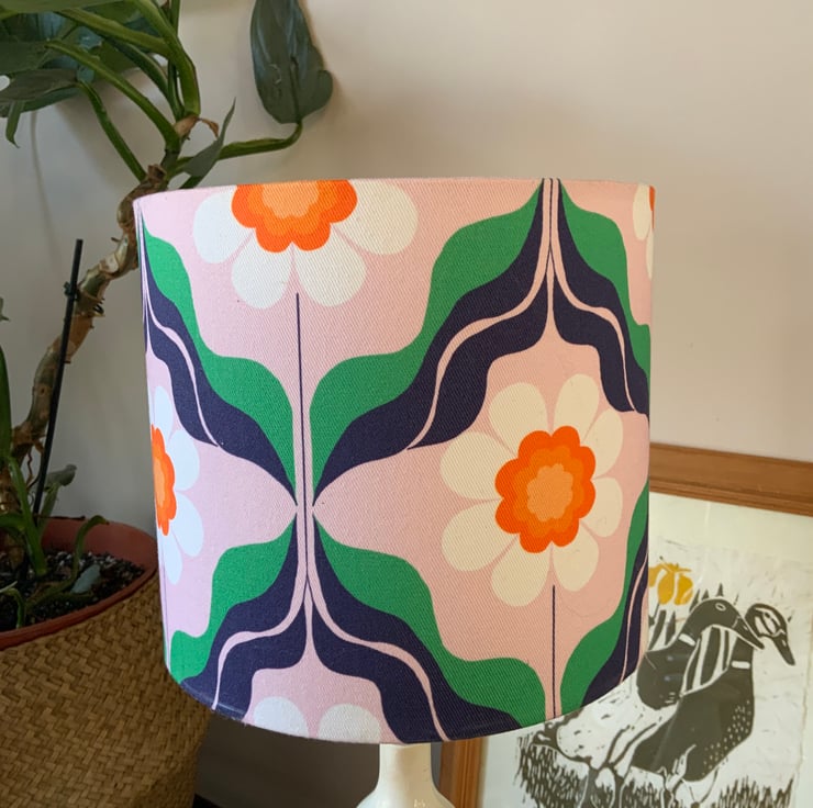 Bring the joy and colour of the 1970s into your home with this handmade retro floral lampshade, designed and crafted by me in my home studio.