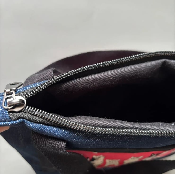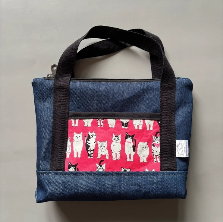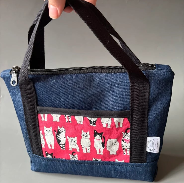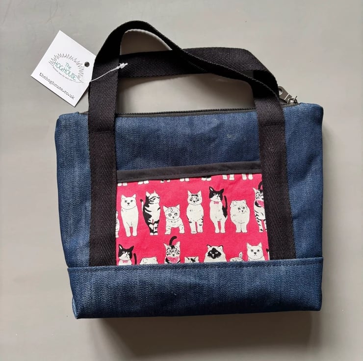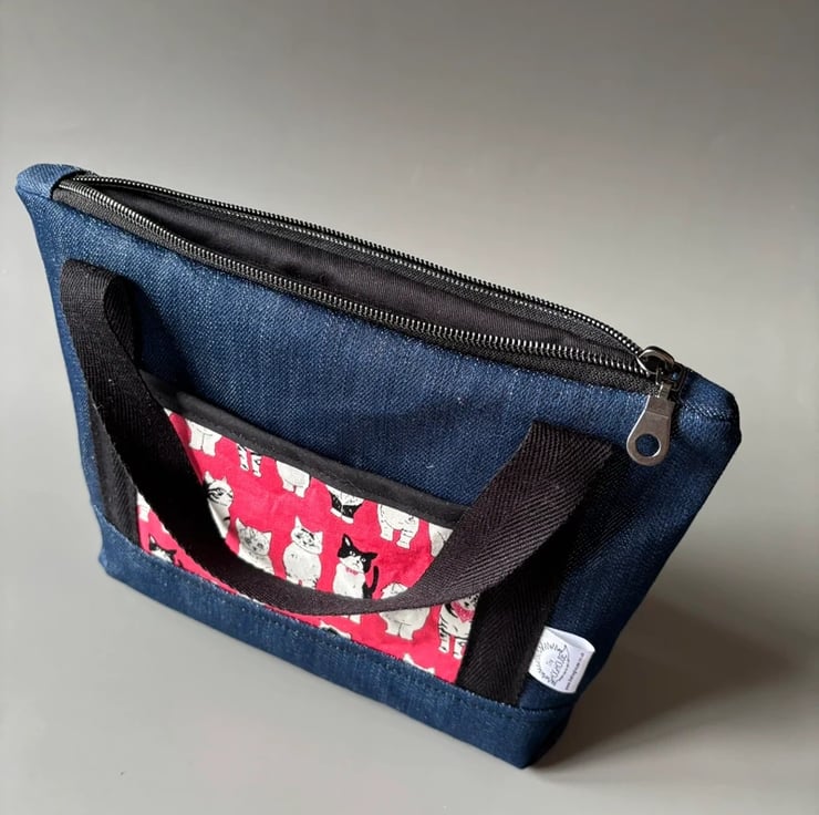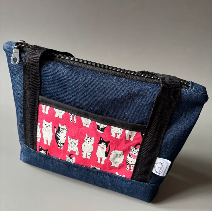 Adorable denim cat bag, ideal as a toiletry bag, make up bag or even a small every day essentials bag.