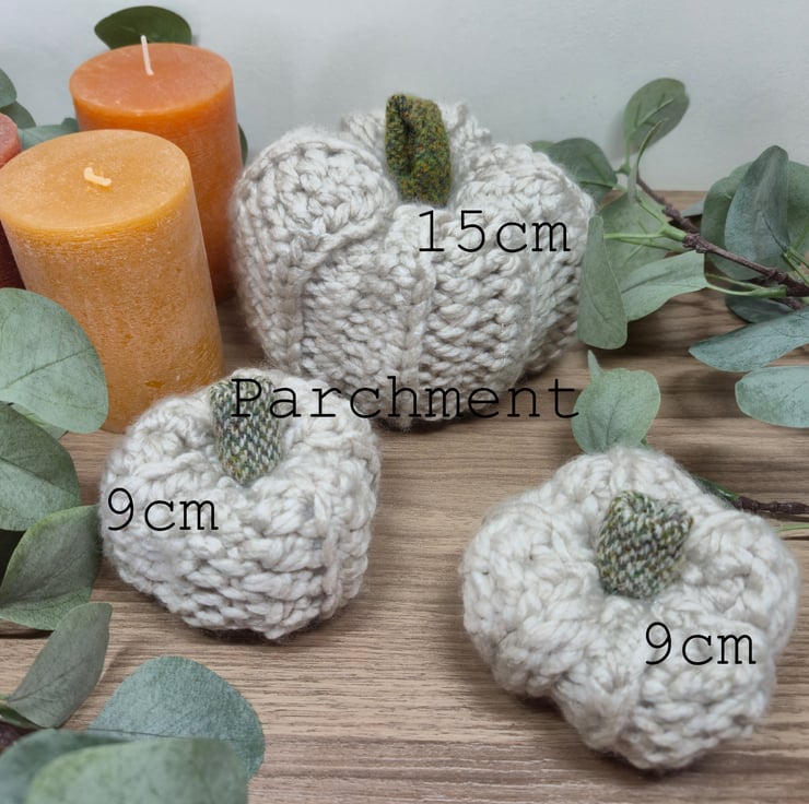 Beautiful handmade crochet pumpkins. Perfect for decorating your home this Autumn. Made in a chunky yarn and finished with Harris Tweed stalks, each pumpkin is truly one of a kind - just like the real thing!