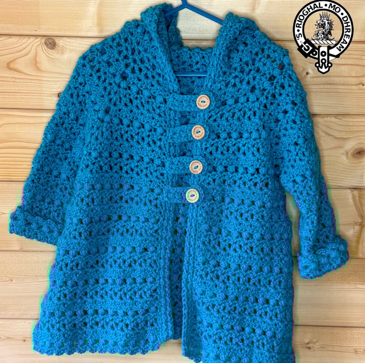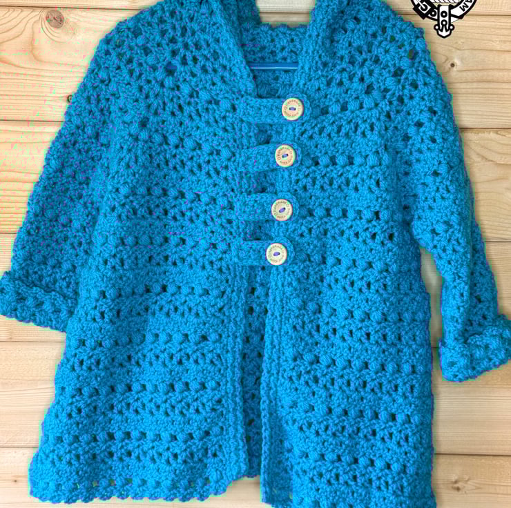Bundle up your little one in charm with this enchanting handmade crochet coat! This coat is perfect for layering on chilly days. With a very textured design, this coat brings a touch of magic to every outing. The longer length offer extra warmth. Ideal for autumn strolls, winter playdates, or simply twirling in style!