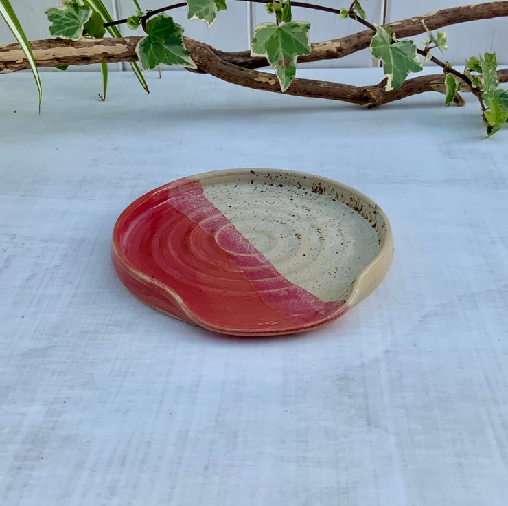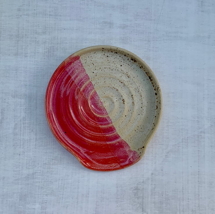 Keep your kitchen counters clean in handcrafted style with this stoneware spoon rest, lovingly hand-thrown on the wheel. Finished in Winter Wood and Raspberry Mist glazes, each piece features a unique spiral pattern that reflects the maker’s touch. The lowered lip cradles your spoon perfectly, combining beauty with everyday practicality. Durable, tactile, and made to last — a charming companion for any cook who loves handmade pottery and timeless design.