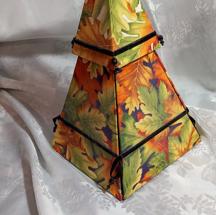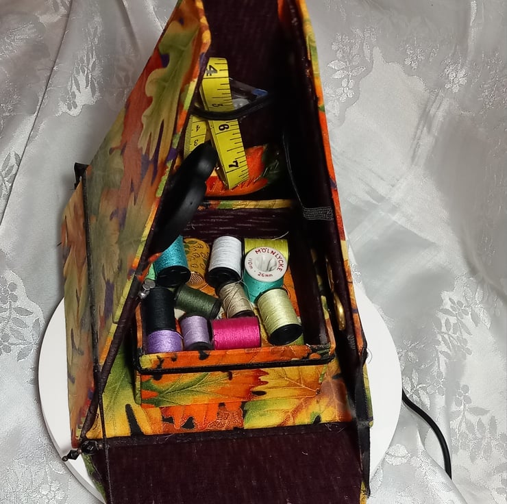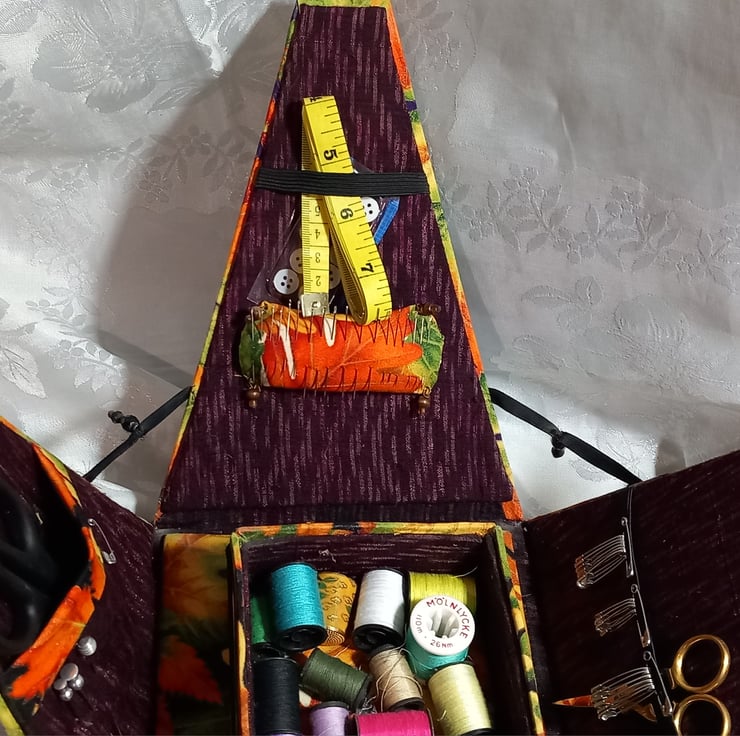 Handmade pyramid sewing box. Fully equipped. Autumn colours.