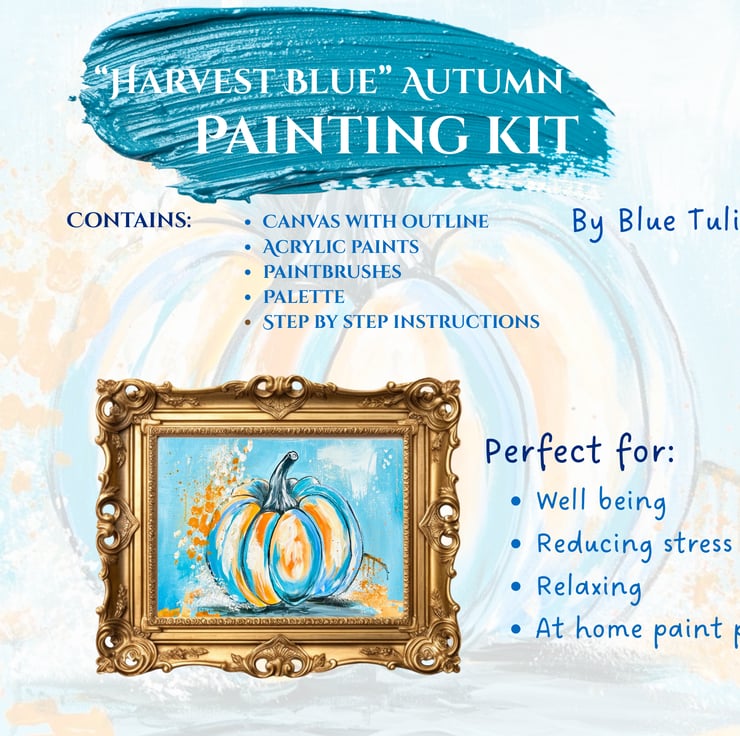Bring a touch of rustic charm to your home with “Harvest Blue”, a delightful autumn-themed acrylic painting kit perfect for beginners and creative souls alike. This relaxing DIY art set includes everything you need to paint your own abstract pumpkin masterpiece — inspired by warm autumn colours and countryside beauty.