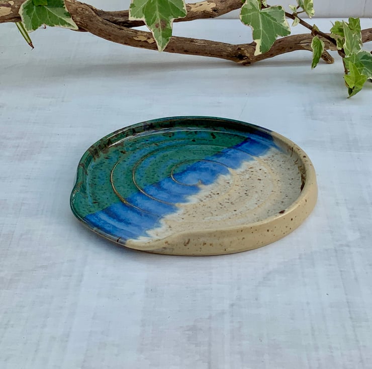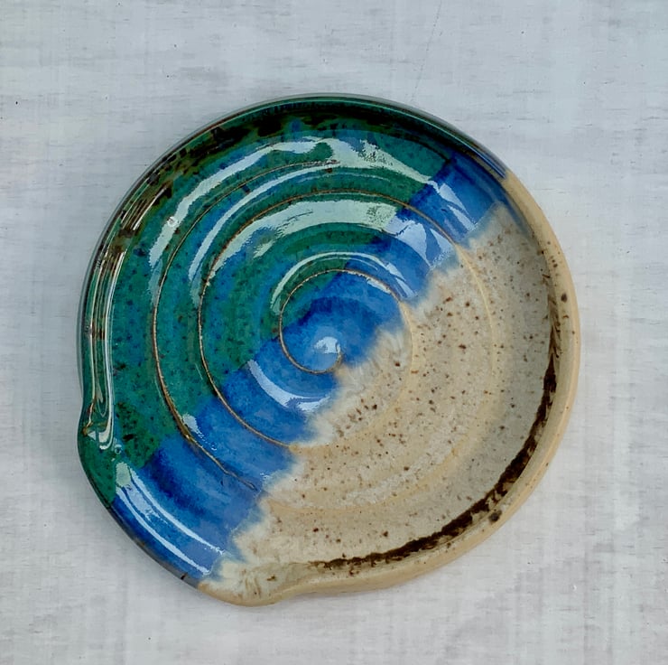 Keep your kitchen counters clean in handcrafted style with this stoneware spoon rest, lovingly hand-thrown on the wheel. Finished in Winter Wood and Midnight Rain glazes, each piece features a unique spiral pattern that reflects the maker’s touch. The lowered lip cradles your spoon perfectly, combining beauty with everyday practicality. Durable, tactile, and made to last — a charming companion for any cook who loves handmade pottery and timeless design.