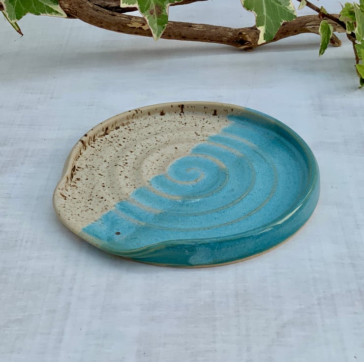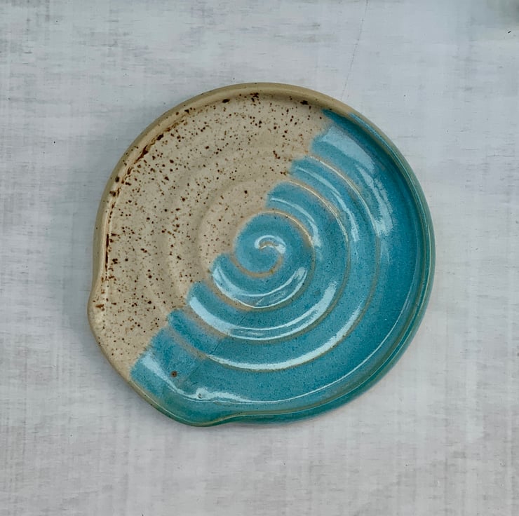 Keep your kitchen counters clean in handcrafted style with this stoneware spoon rest, lovingly hand-thrown on the wheel. Finished in Winter Wood and Norse Blue glazes, each piece features a unique spiral pattern that reflects the maker’s touch. The lowered lip cradles your spoon perfectly, combining beauty with everyday practicality. Durable, tactile, and made to last — a charming companion for any cook who loves handmade pottery and timeless design.