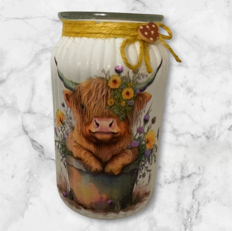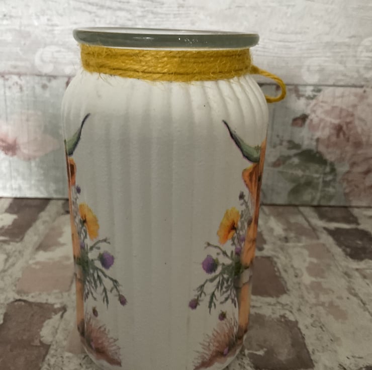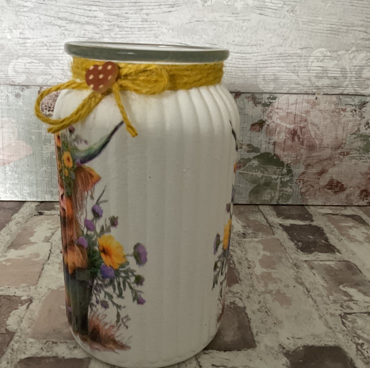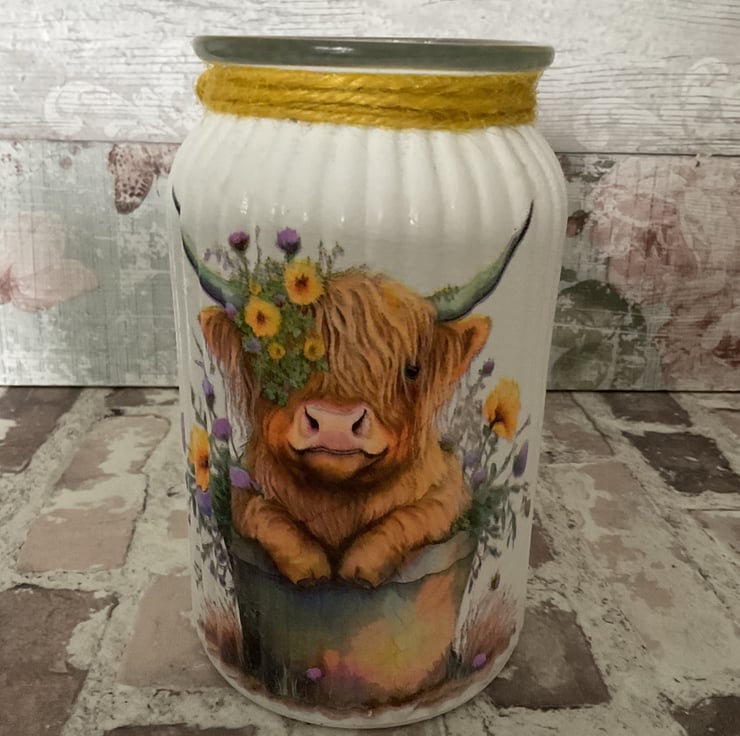 Hand painted and decoupaged with image.