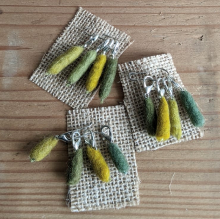 Felted stitch markers for knit or crochet - set of 4 olives and greens