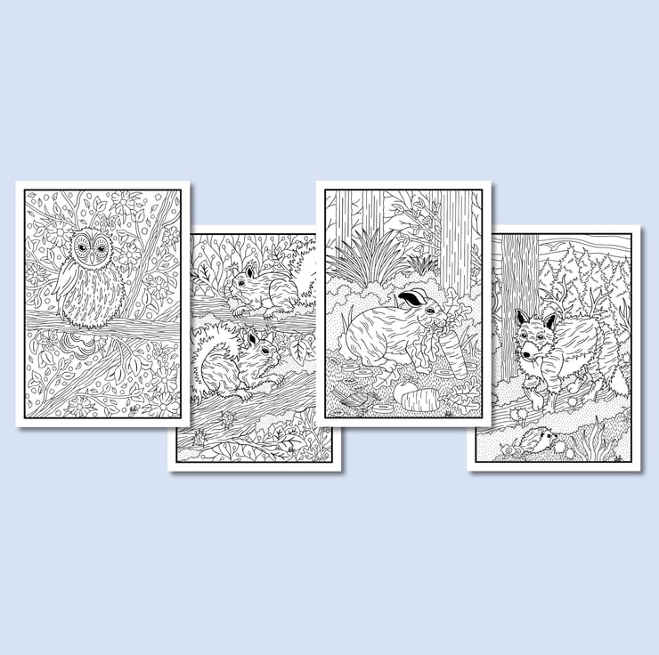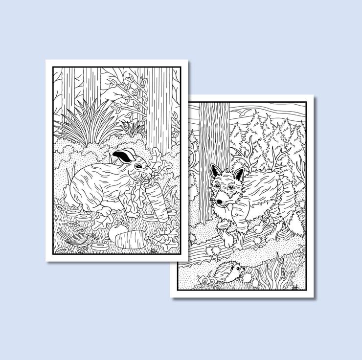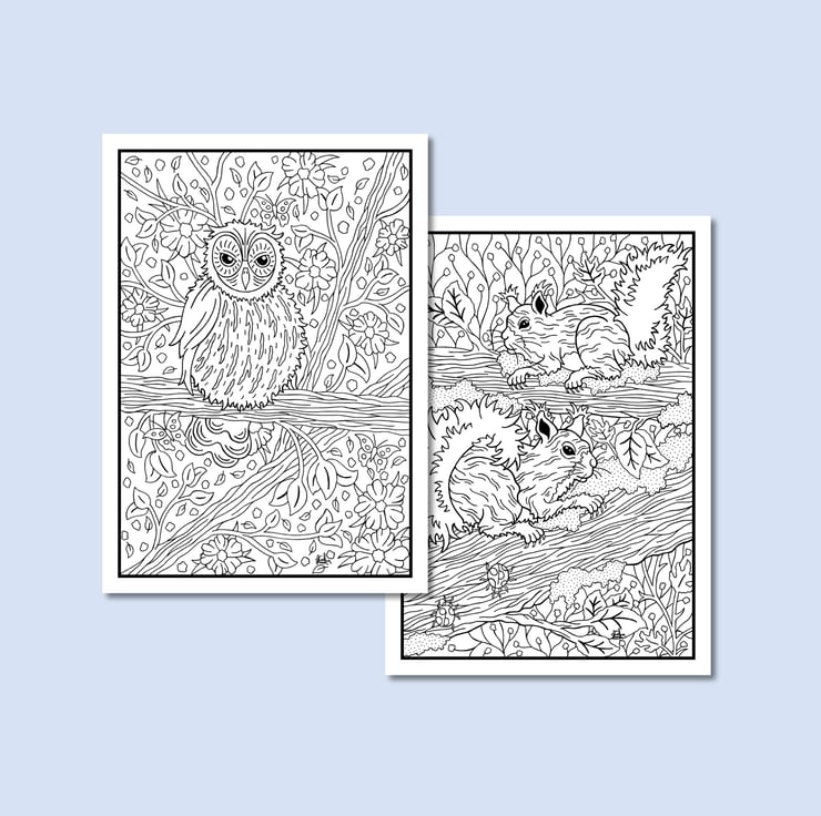 Beautifully illustrated colouring pages of nature and wildlife ready to print (digital).