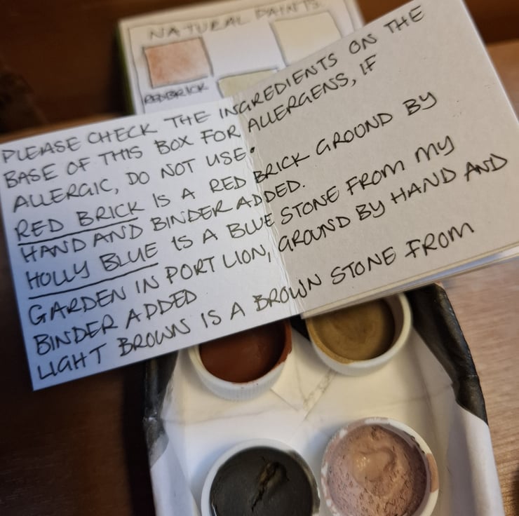 The majority of the colours are made from items found in my garden, such as stones, rocks, soil and plants.