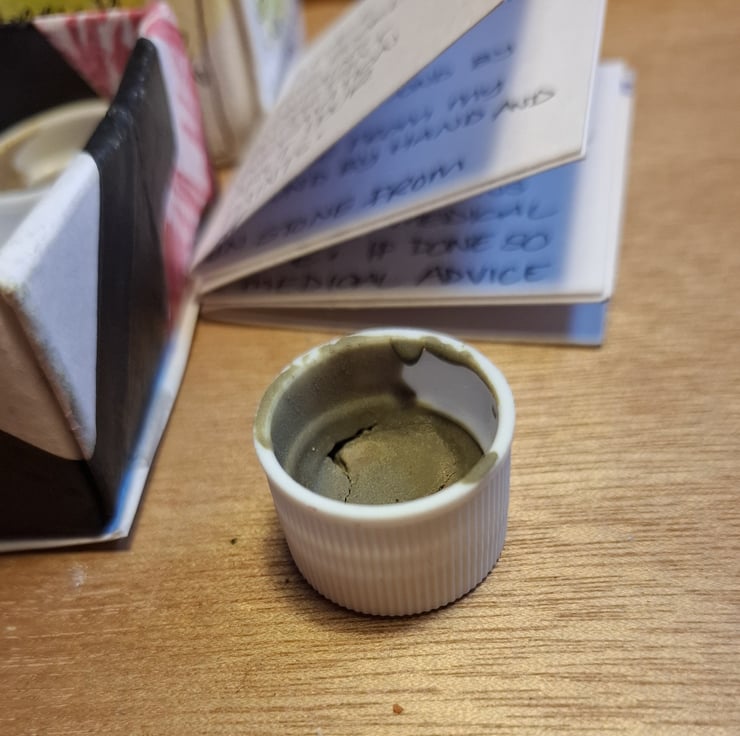 This is a sample set of handmade, naturally coloured watercolour paint—5 colours in total. The amount of paint is dependent on its availability.