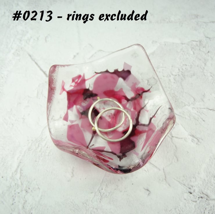 Pink and purple fused glass ring dish, 7cm approx, handcrafted (0213)