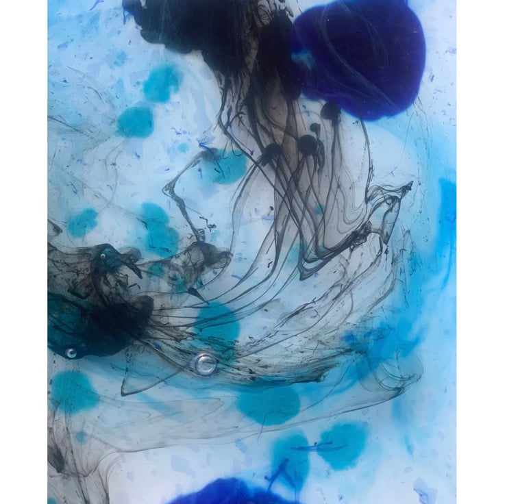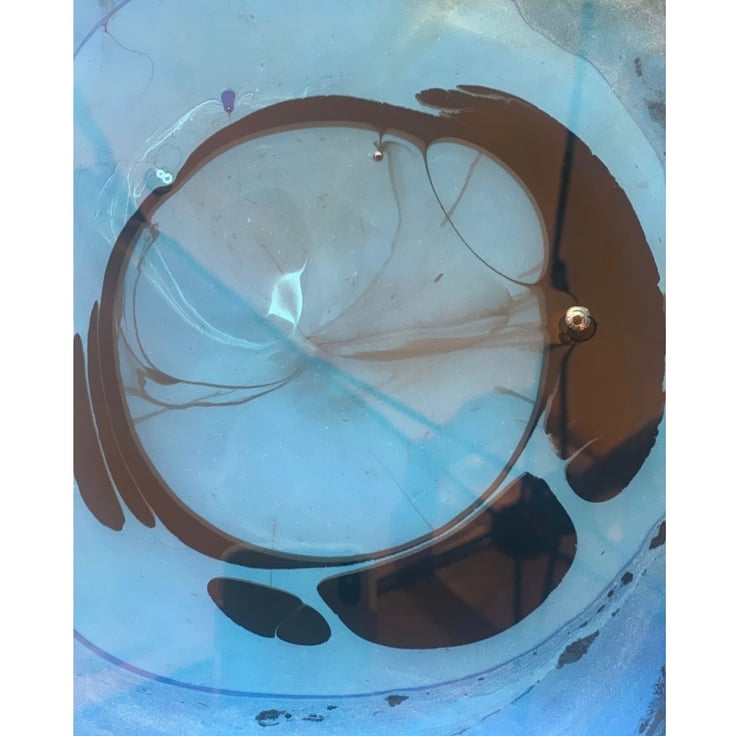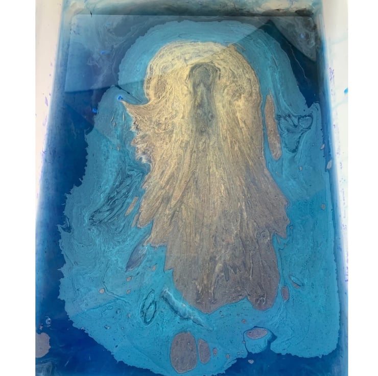 Psychedelic ink on water patterns printed on high gloss Photographic paper. Photos taken during the marbling print process.
