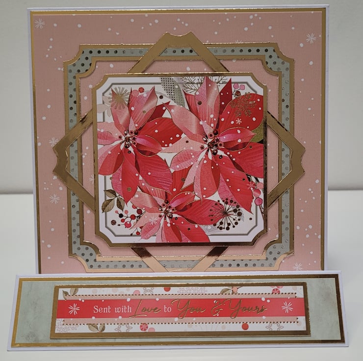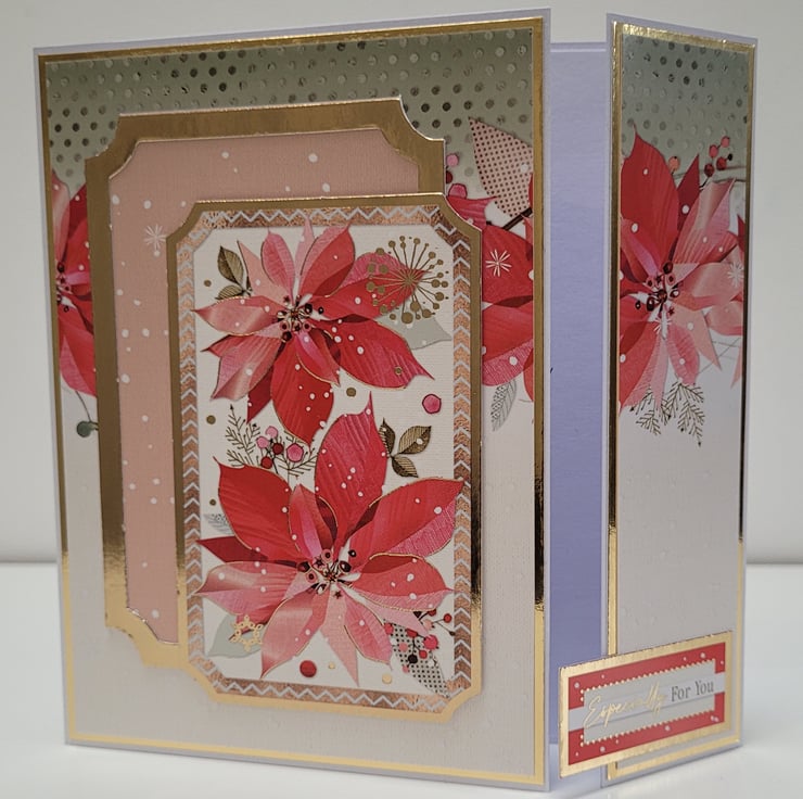A beautiful set of 4 handcrafted Christmas Cards featuring contemporary imagery of poinsettias accented with gold foiling, gold mirri™ card, and coordinating sentiments.
