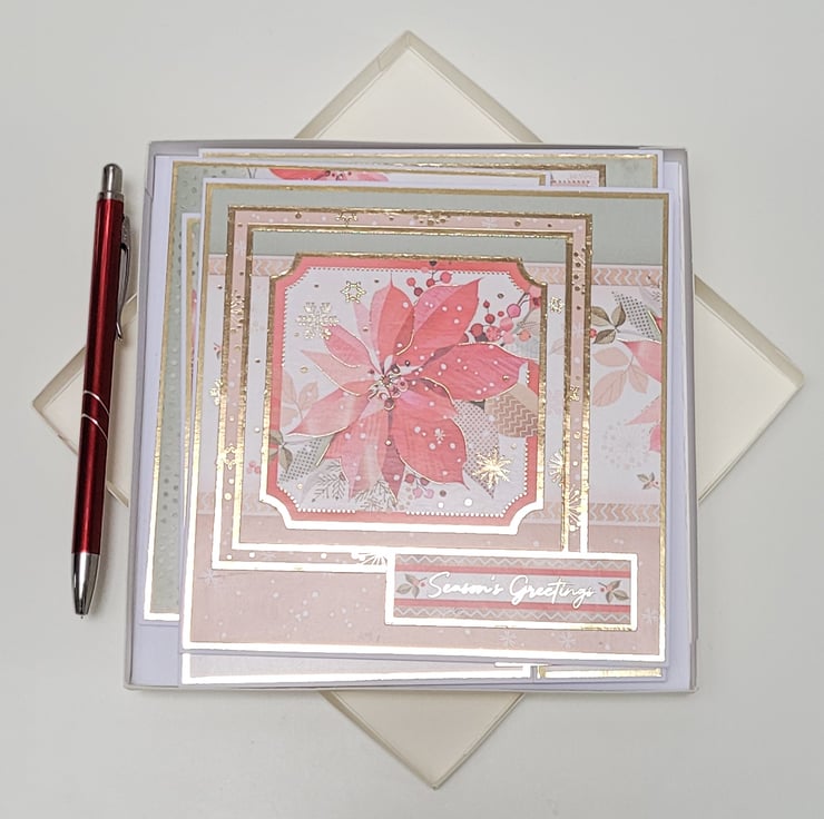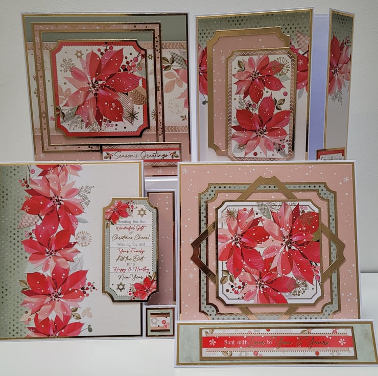 Pretty Poinsettia - Set of 4 contemporary Christmas Cards