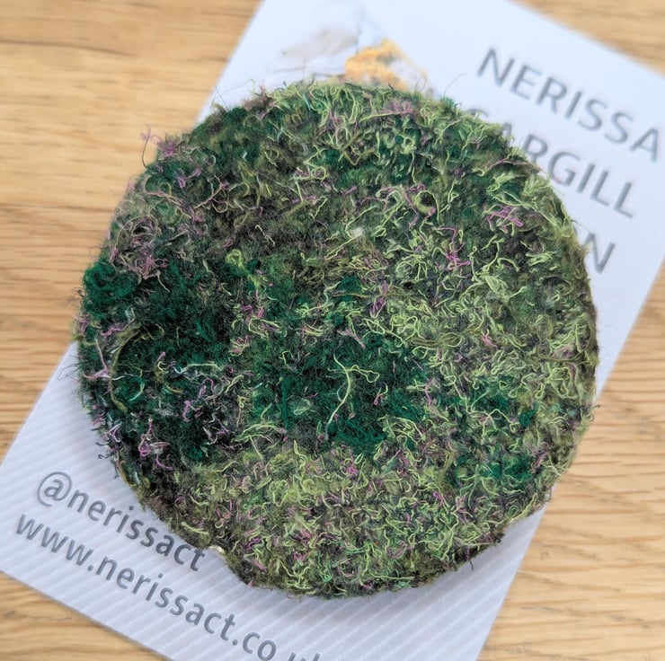 Beautifully textured textiles in rich mossy greens with pops of soft teals, blue and green for a landscape in a brooch. Other sizes in this colourway are available.