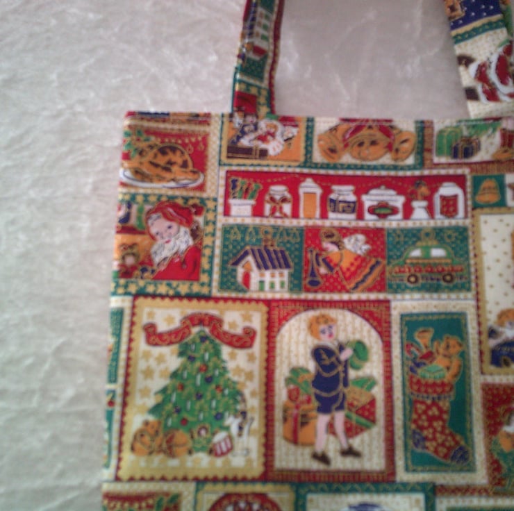 The bag would make an ideal reusable gift bag or Christmas Party Bag.