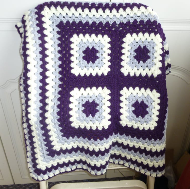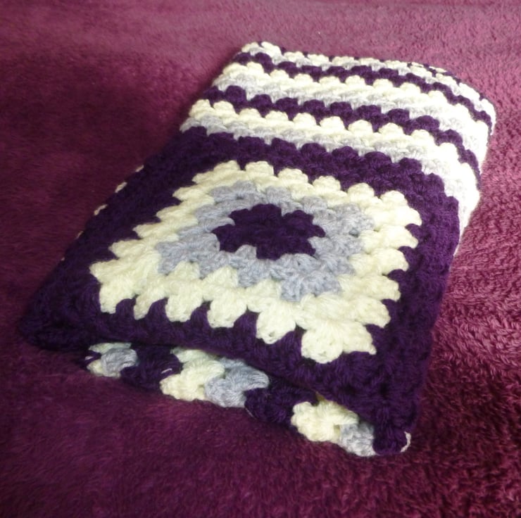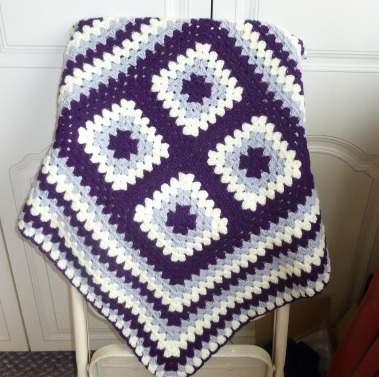 this pretty lap blanket or baby blanket has been crocheted in beautiful soft acrylic yarn.