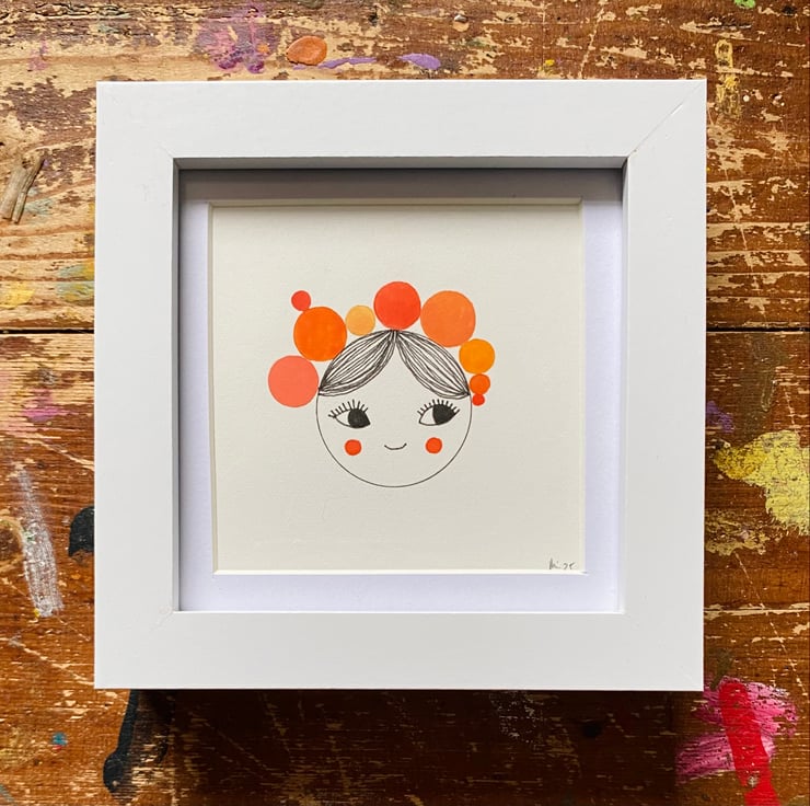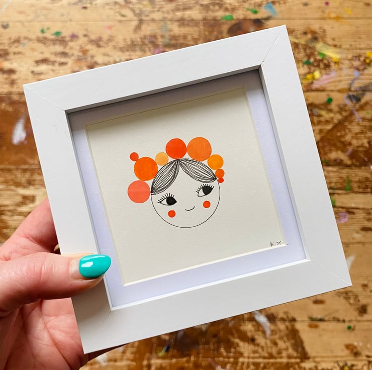 Happy little illustration finished in Holbein Gouache, measuring 8 x 8 cm set in a simple mount and white 12 x 12 cm frame, ready to pop straight in to your wall!