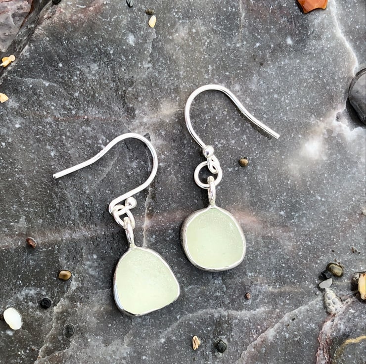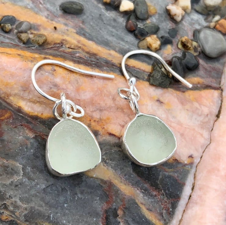 These beautiful pieces of frosty white sea glass were found along the UK's South West coastline and have been handpicked and paired together to make a unique pair of earrings.