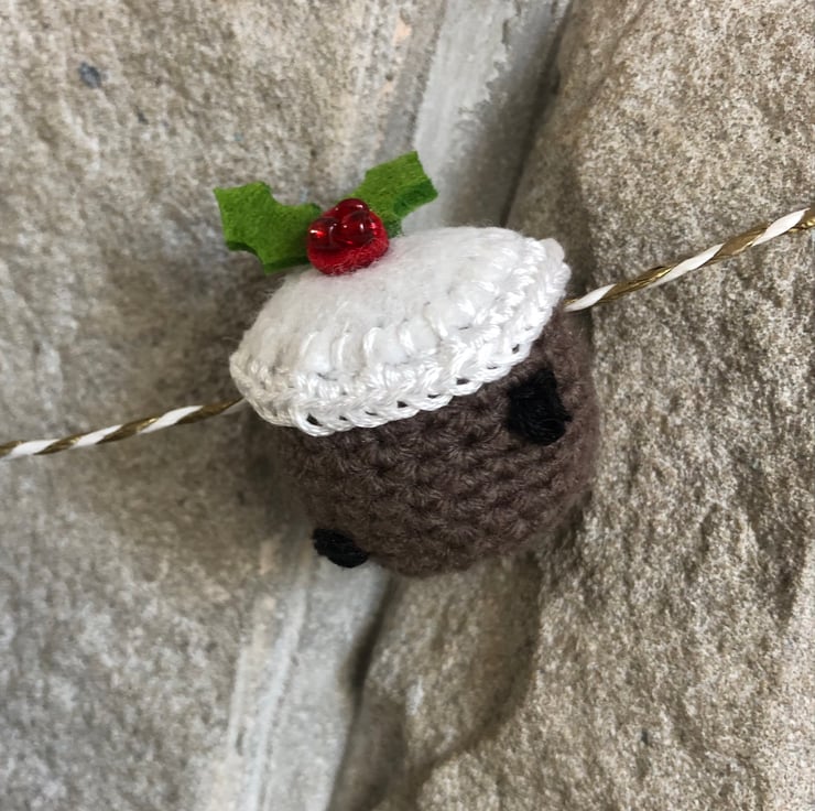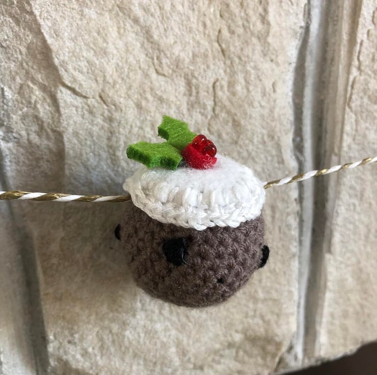 Christmas Pudding garland, crochet and felt Christmas decoration