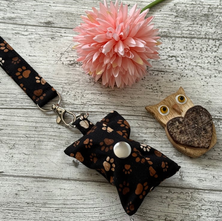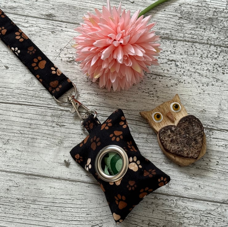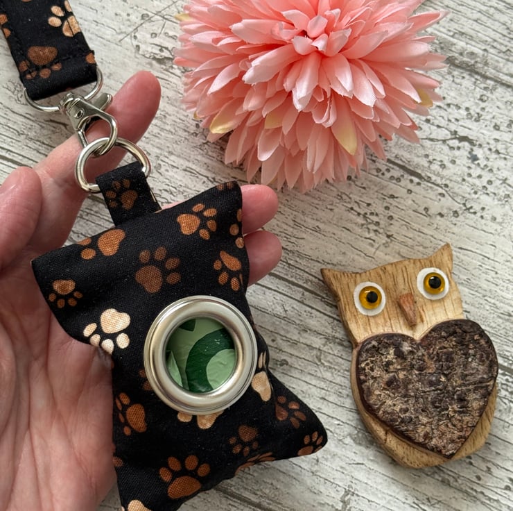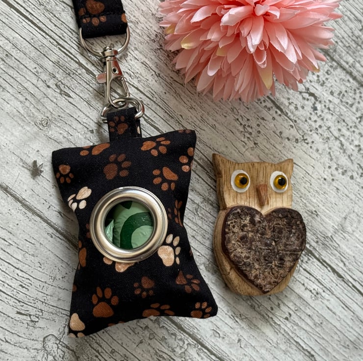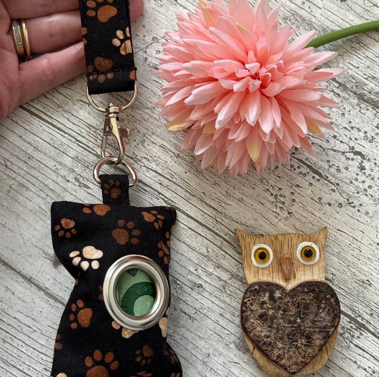 This dog poop bag holder can also be made with a lobster clasp instead of a d ring to allow it to be attached to a bag, clothing or a dog lead. Please message if this is required.
