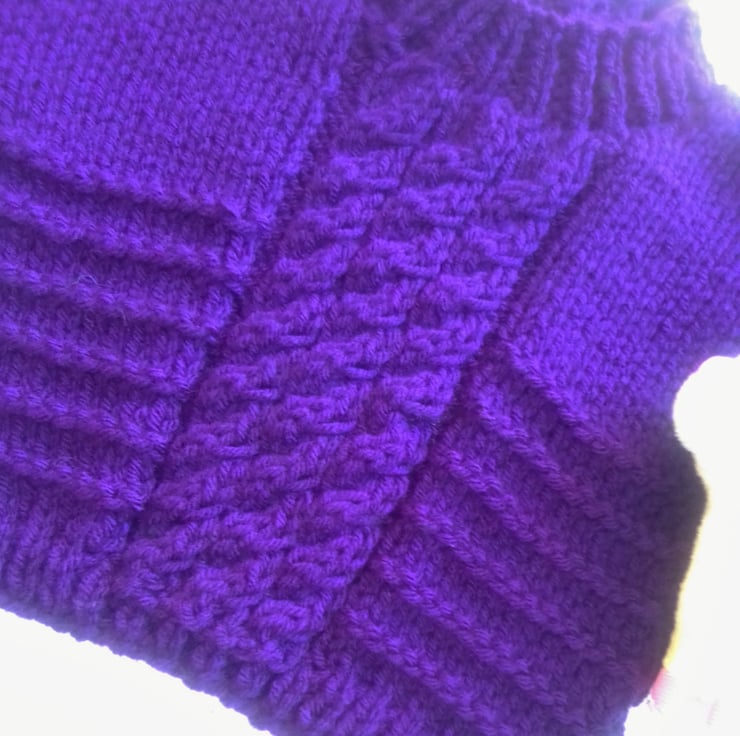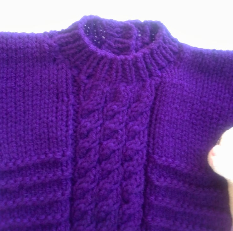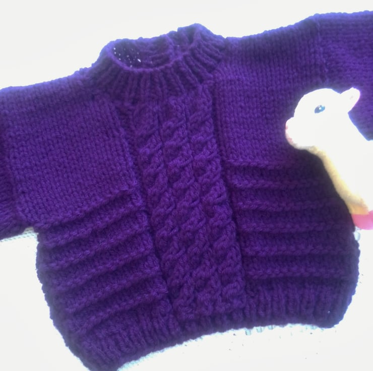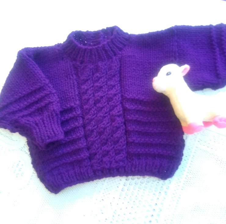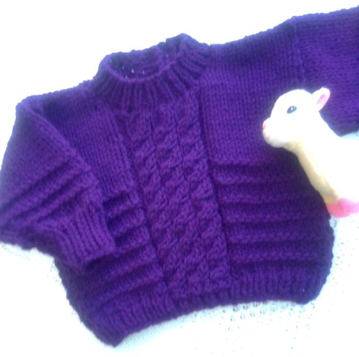 A smart child's jumper with a front cable pattern, hand knitted in chunky weight yarn for additional warmth. The jumper is in stock in this rich purple colour or it can be made especially for you in a size and colour of your choice. Available sizes are shown at the bottom of this listing and please state the colour required when you order. The processing time for this jumper will be approximately 1 - 2 weeks to produce and post to you.