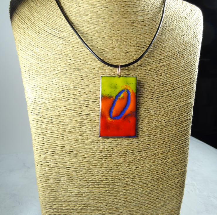Glass enamelled copper pendant on a black leather cord with lobster clasp, handcrafted by myself in Wiltshire.