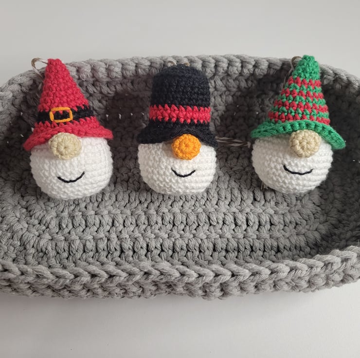 Add a sprinkle of magic to your festive décor with this adorable trio of crocheted holiday gnomes! Each ornament is lovingly handcrafted with cozy yarn and cheerful details, bringing warmth, whimsy, and a touch of Nordic charm to your Christmas tree or seasonal display.