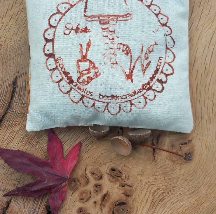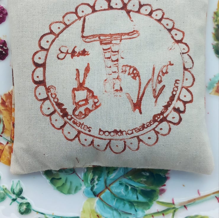 In lovely cotton fabrics .my hand printed lavender bags are full of devon lavender and a little rice to give weight 11 cm square. Come mindfully wrapped. Free UK postage