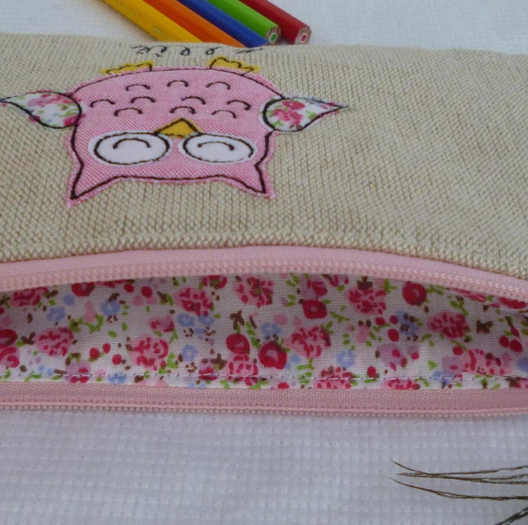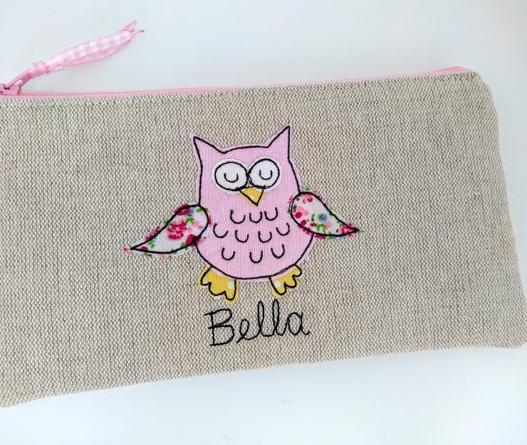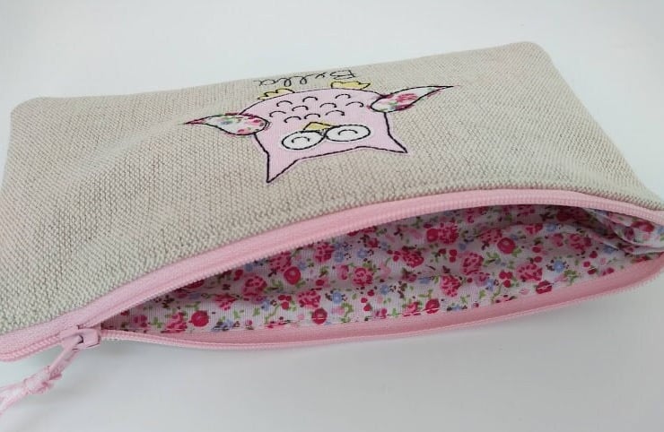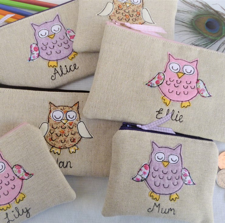 Personalised Owl Cosmetic Bag - Linen Makeup Pouch with Choice of Words