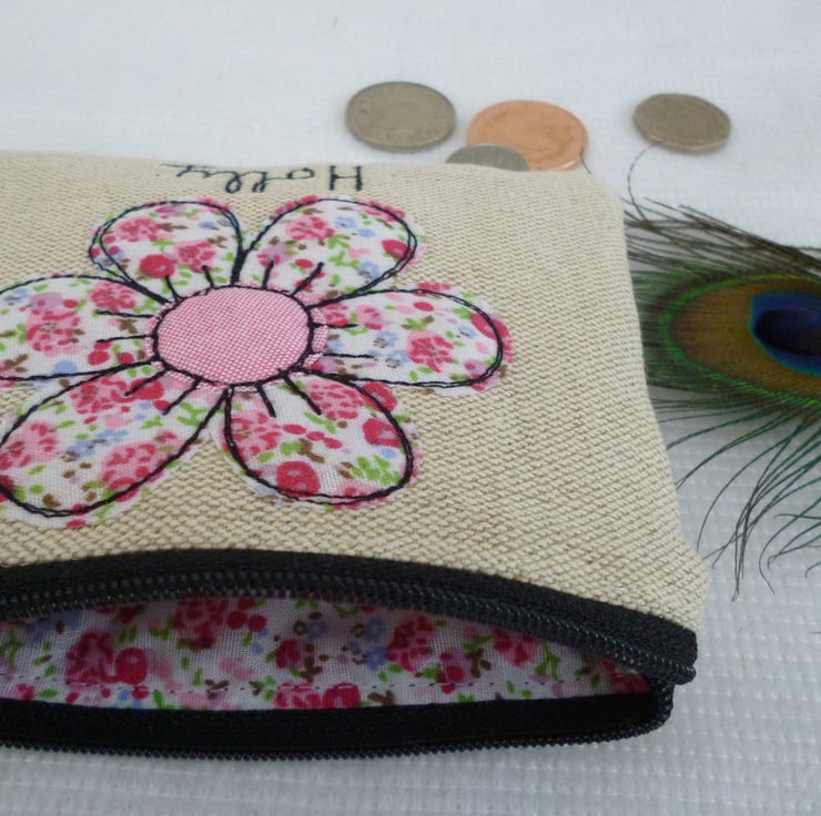 Flower Motif Purse Pouch Wallet - Personalised Gift for Grandma Nanny Mum