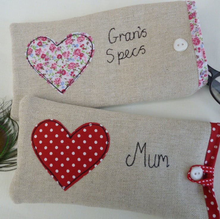 Personalised Heart Glasses Case - Floral or Red Spot Perfect Gift for Valentines