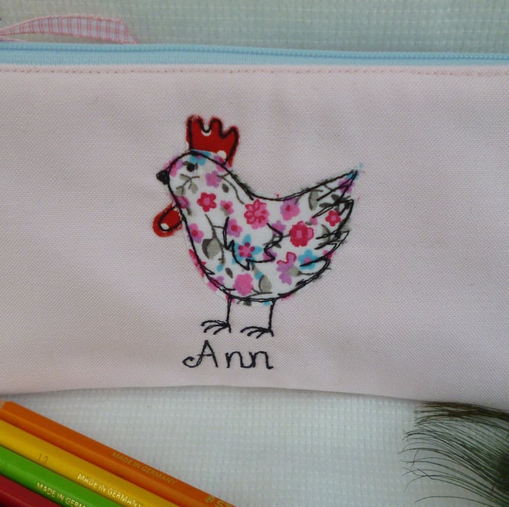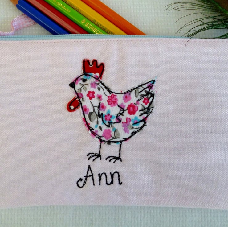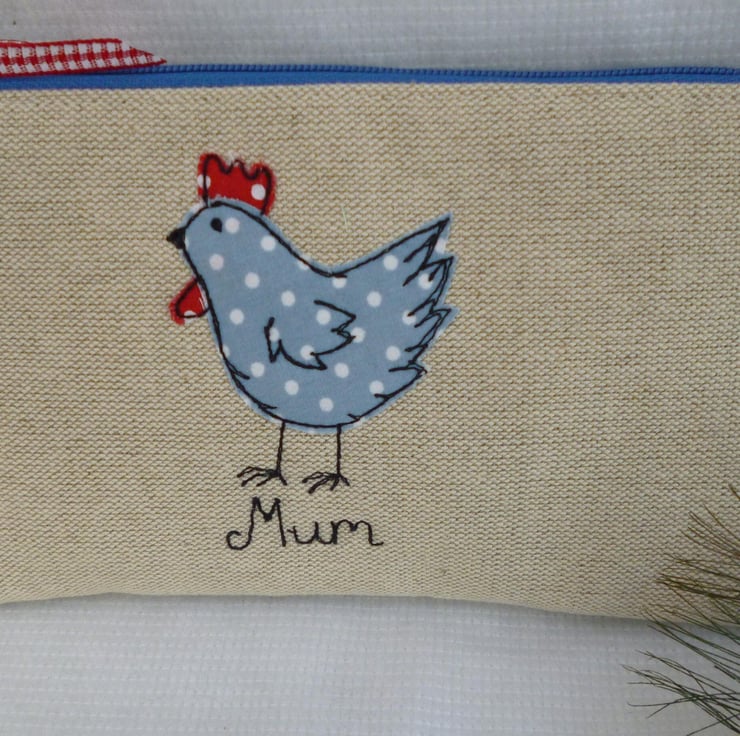 Personalised Hen Cosmetic Bag - Custom Chicken Makeup Pouch - Dotty or Floral