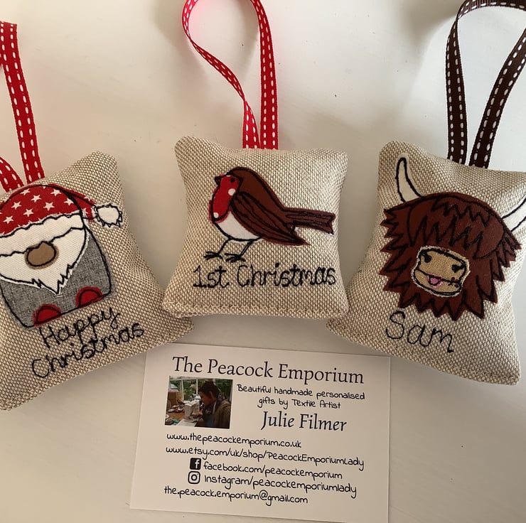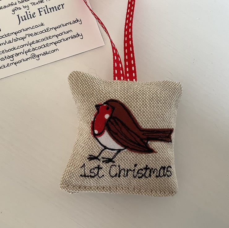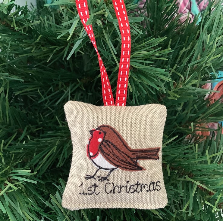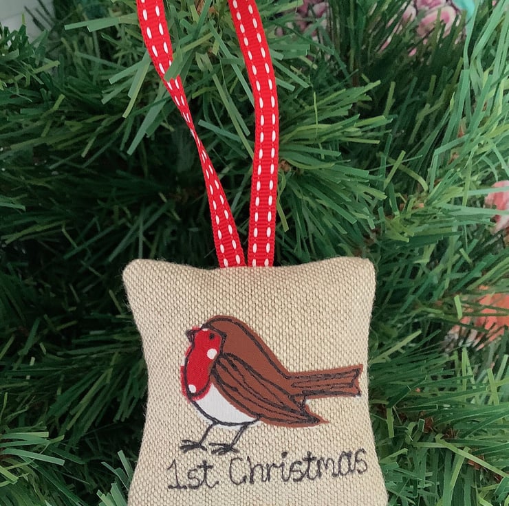 Handmade robin motif applique Christmas tree ornament (5cmx5cm)