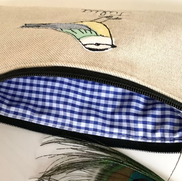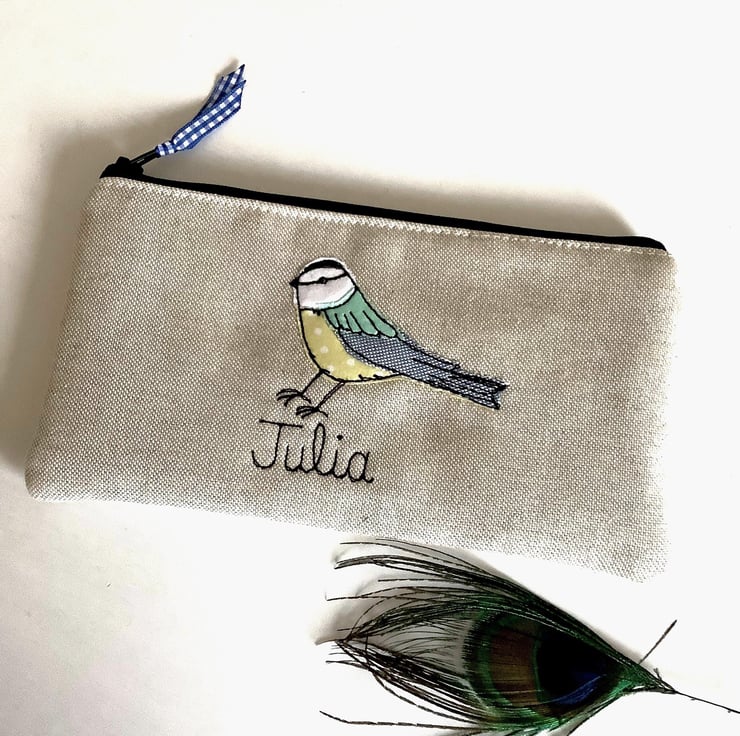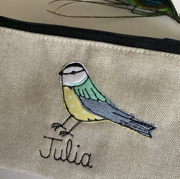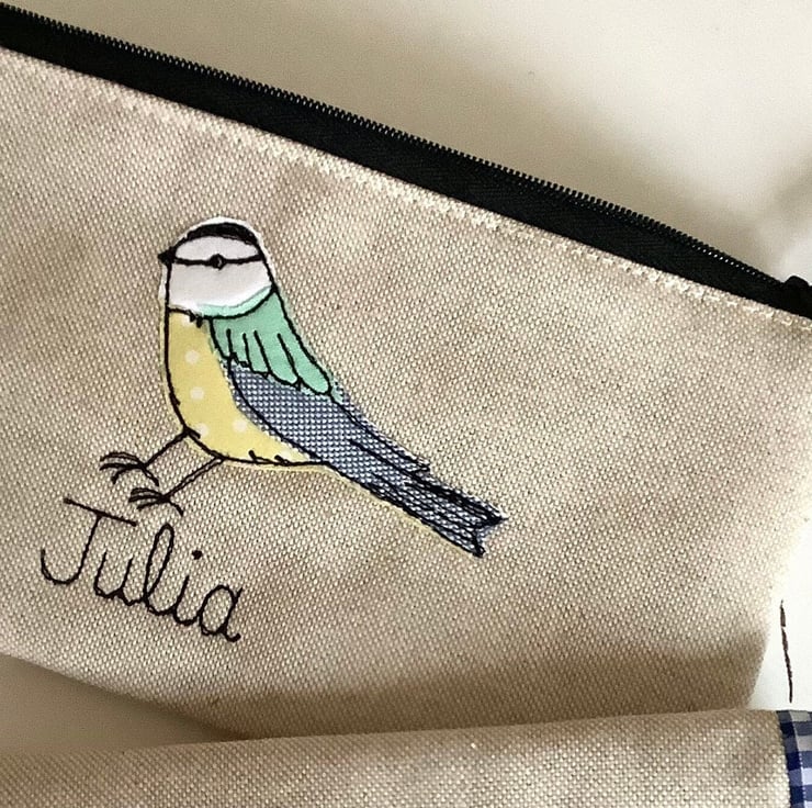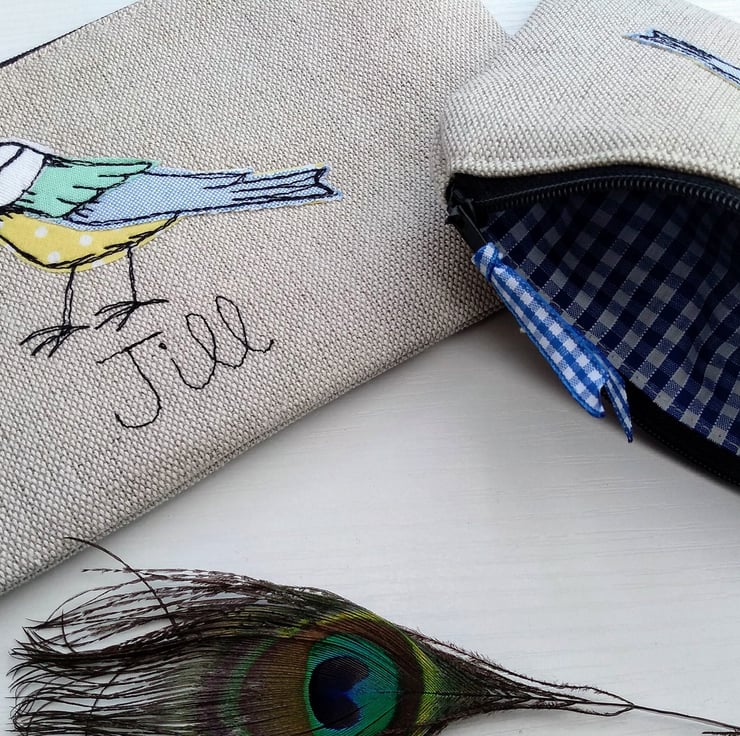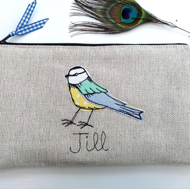 Custom Blue Tit Cosmetic Bag - Personalised Makeup Pouch with Free Motion Design