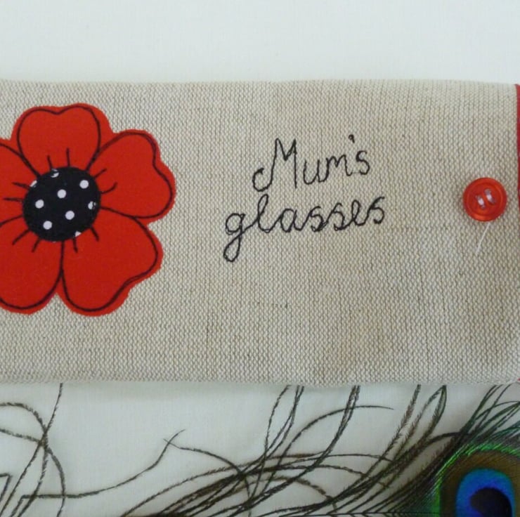 Flower Poppy Glasses Case - Customisable Gift for Grandma or Mum - Linen or Grey