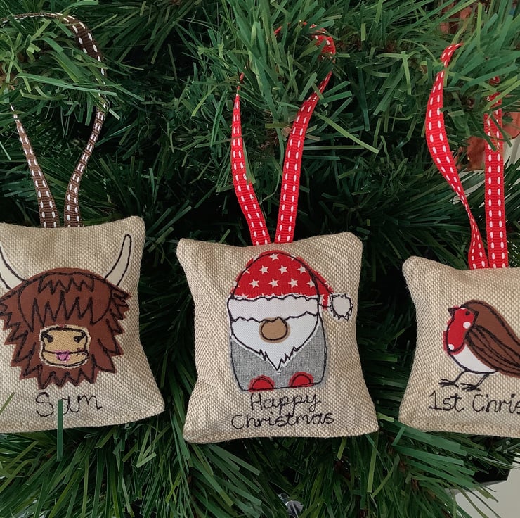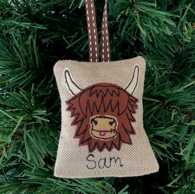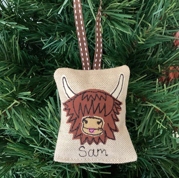 Handmade highland cow motif applique Christmas tree ornament (5cmx5cm)