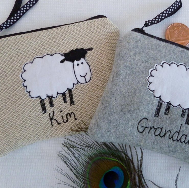 Personalised Sheep Wallet - Custom Coin Purse or Pouch - Unique Gift