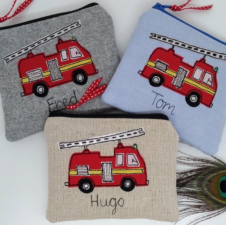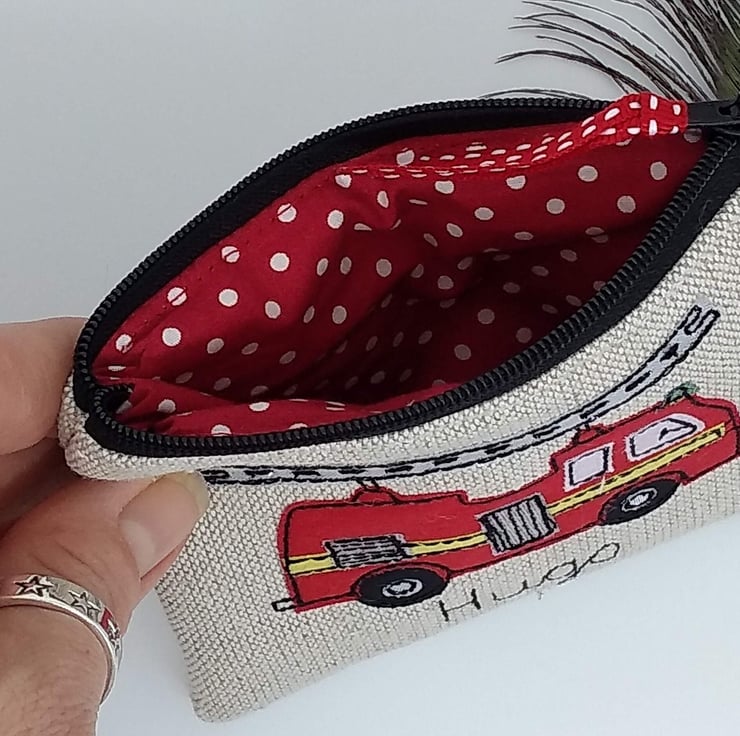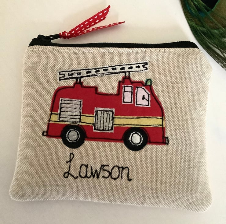 Personalised Fire Engine Wallet - Custom Fire Truck Coin Purse - Boys gift