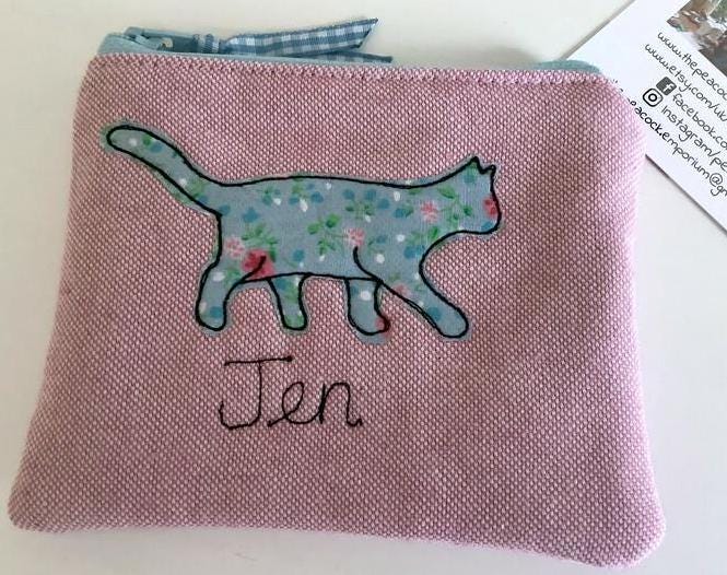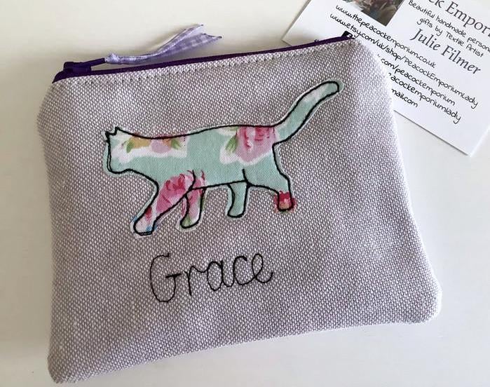 Personalised Cat Purse or Wallet in Choice of Fabric - Floral Print -Unique gift