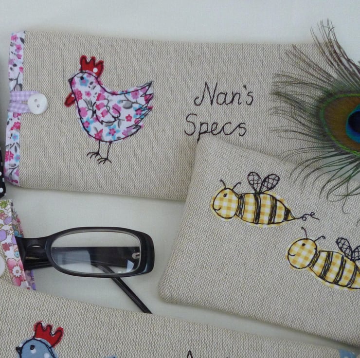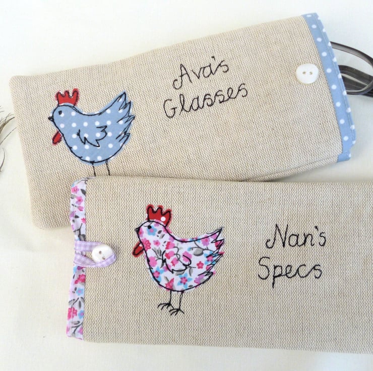 Personalised Chicken Hen Glasses Case - Choice of Floral or Blue Spot Sunglasses