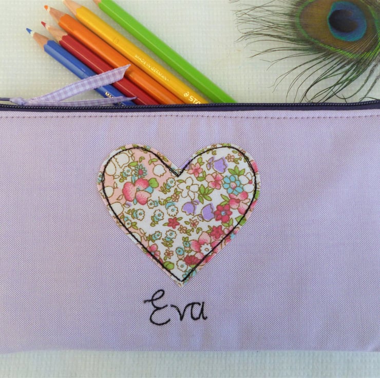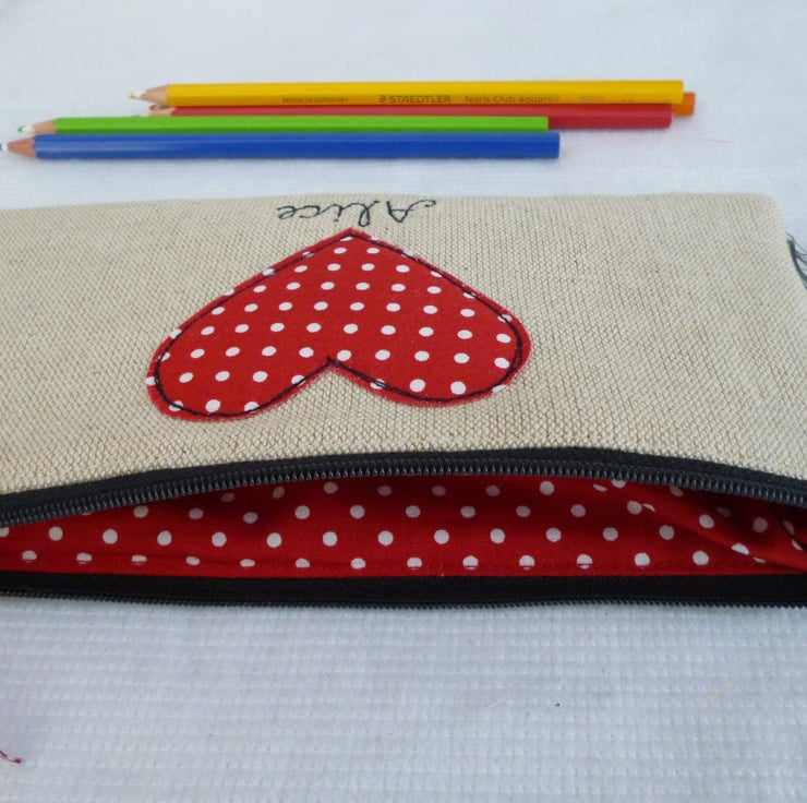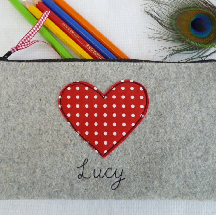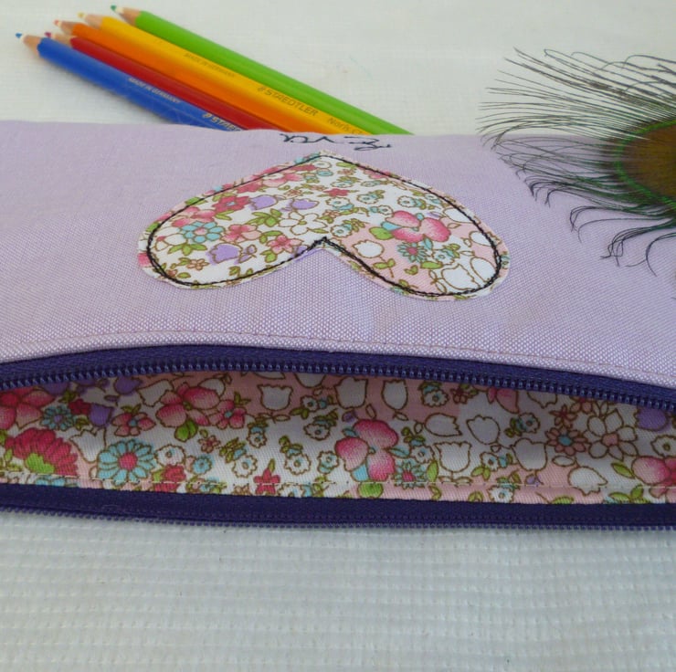 Heart Personalised Cosmetic Bag - Custom Makeup Pouch with Choice of Wording
