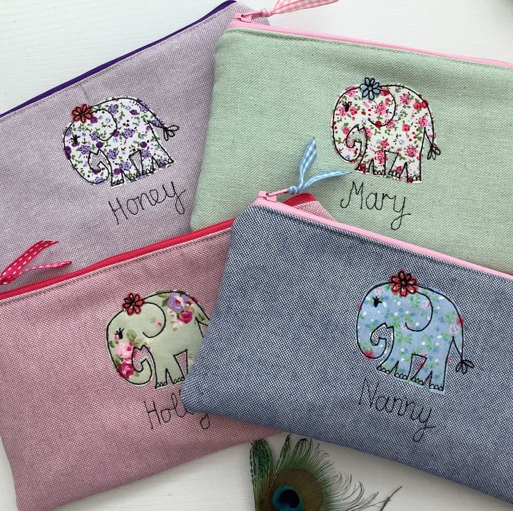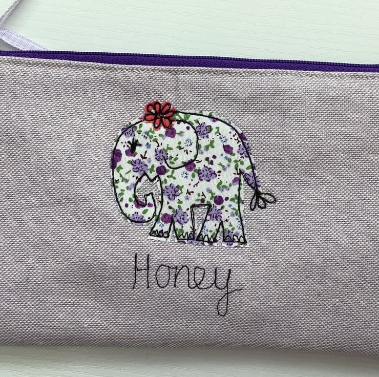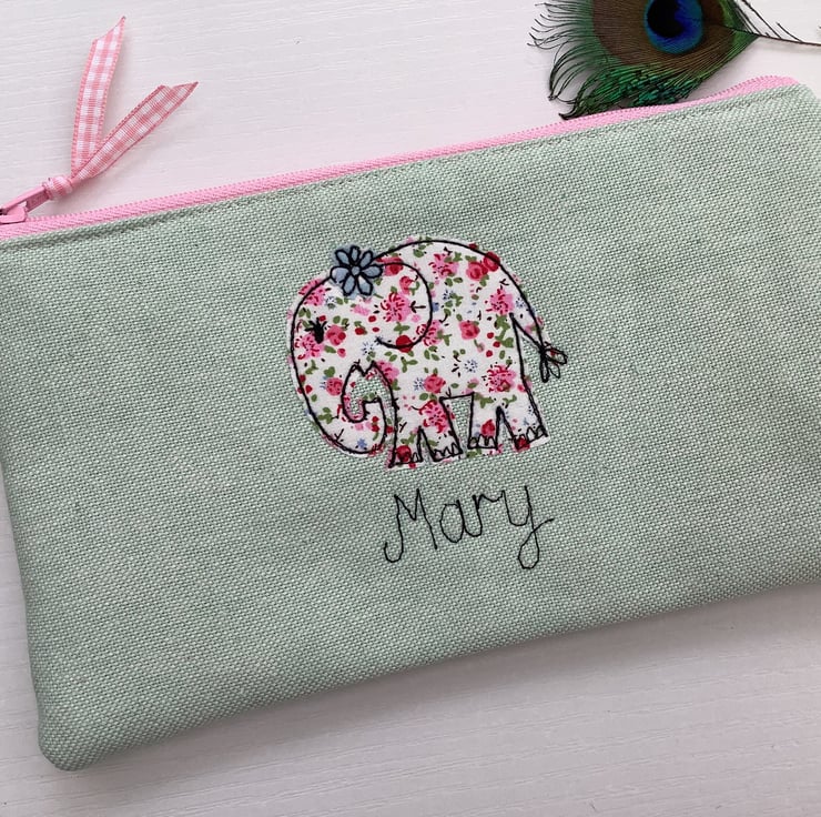 Elephant Personalised Pencil Case - Appliqued Motif Art Pouch- Unique gift