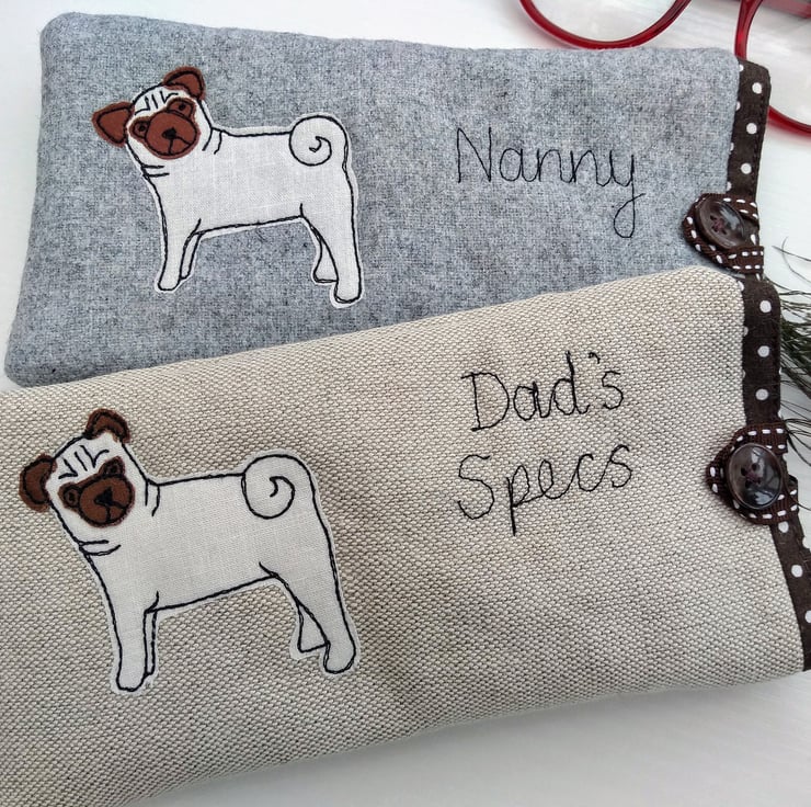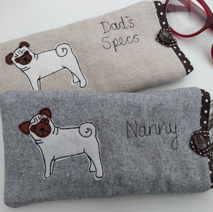 Personalised Pug Glasses Case - Dog Custom Spectacles or Sunglasses Case